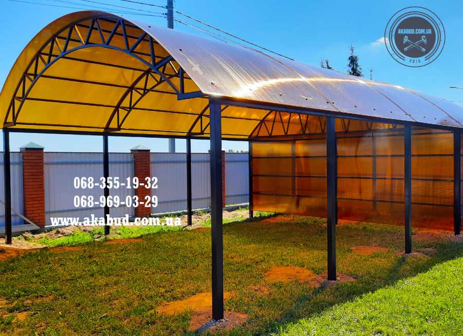 Навіси для авто, тераси, зони відпочинку; арочні, односхилі, двосхилі; полікарбонат, метал, кування. Автонавіс Кривий Ріг. Замовити, купити навіс на авто. Автомобільні навіси у Кривому Розі. Автонавіси Кривий Ріг. Виробництво навісів від компанії Akabud.