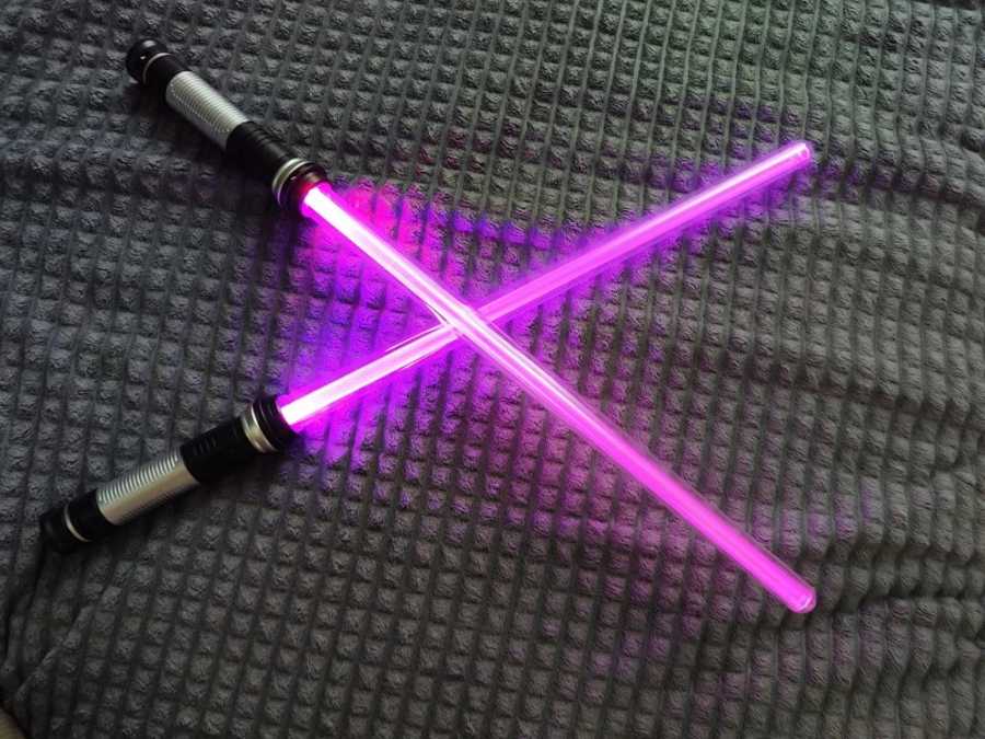 Два клинка по 66 см соединяются в полноценный 132-сантиметровый посох — точь-в-точь как у Дарта Мола. Можете использовать как единое оружие или разъединить на два отдельных меча. Прочная конструкция, удобные рукояти, продуманная эргономика.