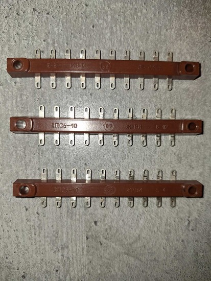 Плата сполучна 3ПС6-10 для навісного монтажу з 10 парами контактів на максимальну робочу напругу 600 В та силу струму до 8 А. Призначена для з'єднання електричних ланцюгів постійного, змінного та імпульсного струму при внутрішньому об'ємному монтажі радіоелектрон